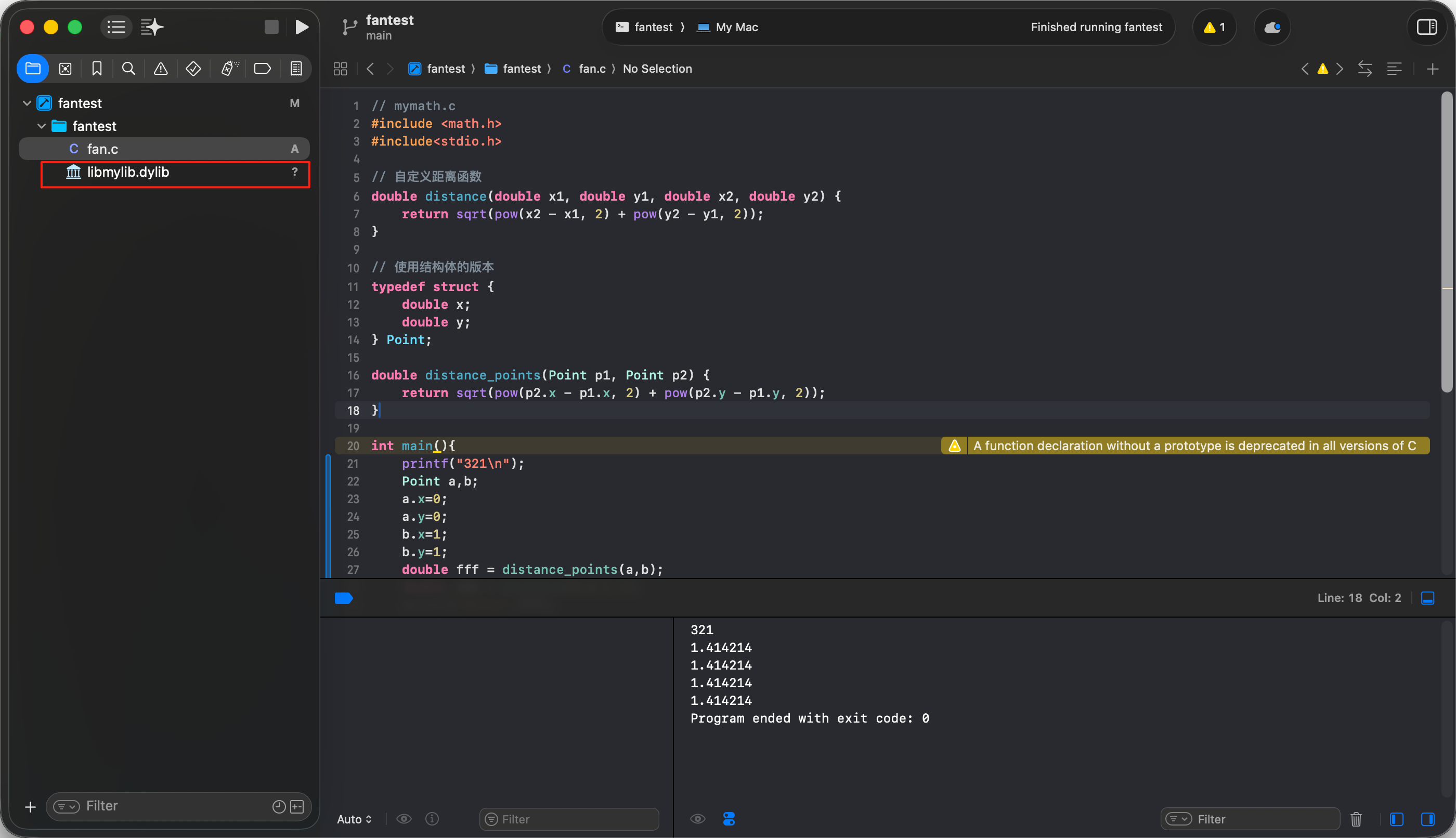 gcc -shared -fPIC -o libmylib.dylib fan.c