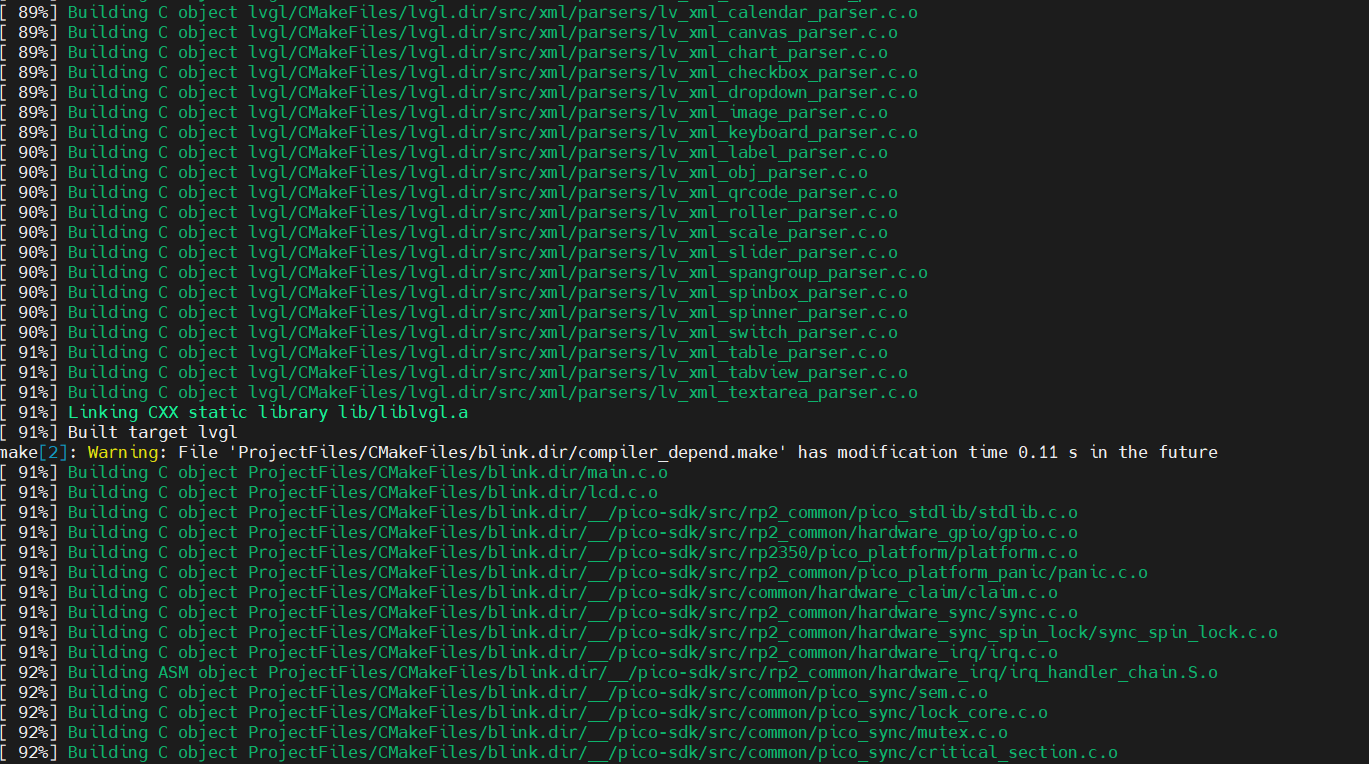 之后就可以make了,此时Make的时间暴增,在我的WSL虚拟机上要差不多20分钟了。可以看到,91%的文件都是LVGL的。这部分应该可以裁剪一些。。。