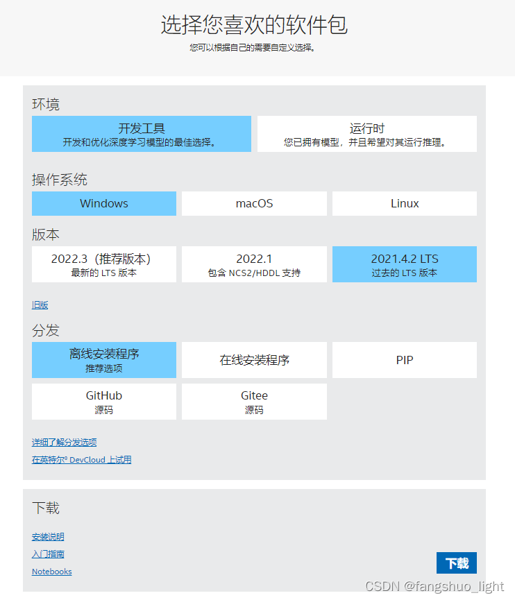 进入官网下载离线安装包下载英特尔® 发行版 OpenVINO™ 工具套件。