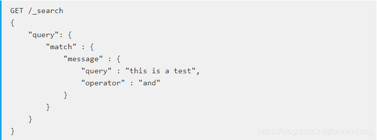 那么这里经过分词后的this、is、a、test各个单词之间就是默认为"或"的匹配关系,可以通过operator关键字来显式设置各个单词间的匹配关系,如下: