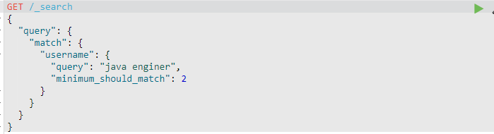 也可以通过minimum_should_match参数来设置控制需要匹配的单词数,比如你的文档里username存的内容是"this is a java enginer",那么通过下面的查询语句可以控制查询文本最少要匹配到"java"、"enginer":