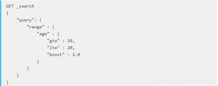 其中gte表示大于等于,lte表示小于等于,gt表示大于,lt表示小于,boost表示对此次query进行相关性算分权重,默认是1.0