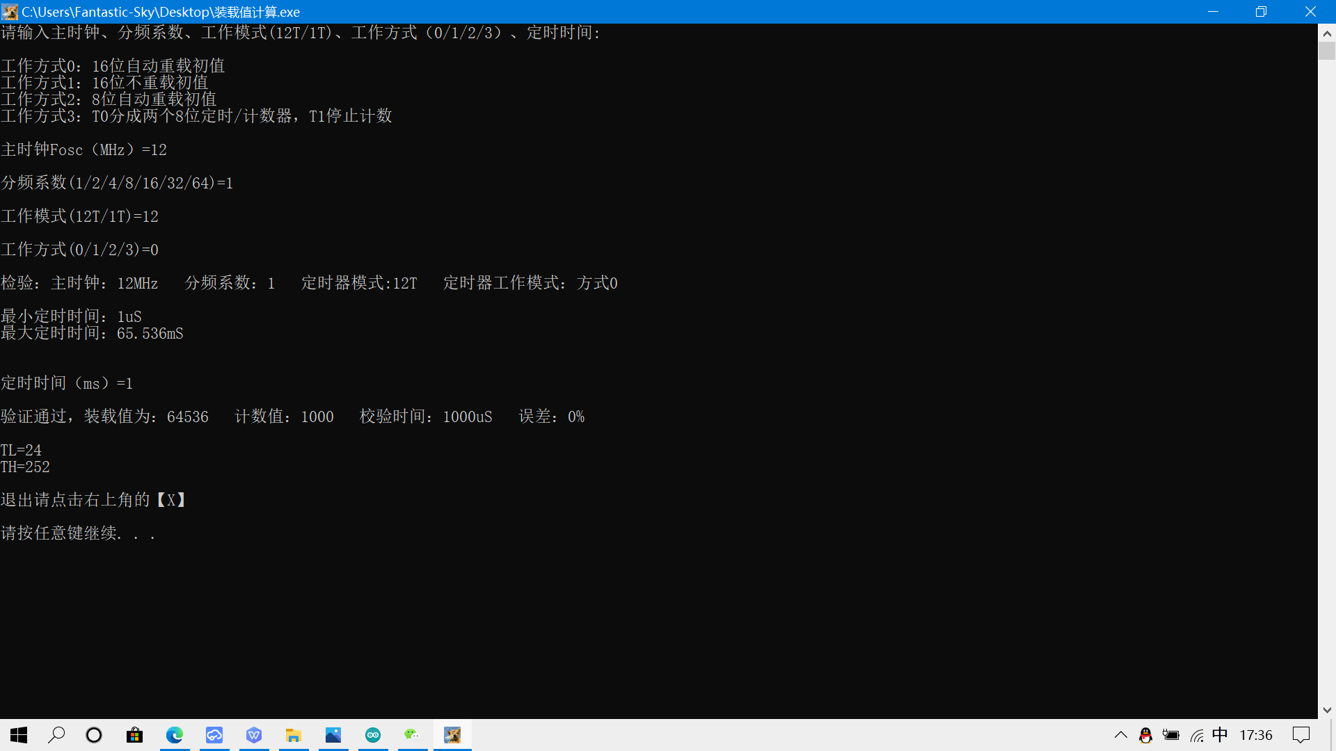 51单片机内部定时器赋初值的计算软件 由于之前比较懒,不太愿意套公式来计算单片机的初值,于是写了一段代码来自动计算初值。值得注意的是,因为定时器有最大定时时间,所以输入定时时间请介于最大和最小的定时时间。有的时候我们需要定时1S钟,但是通过给主时钟分频、让定时器工作在12T模式仍然定不了这么久时间,可以取定时时间的因数。如最大定时时间是65ms,那么我们可以定时50ms,在中断函数中判断中断的触发次数为次时转向1s定时指向的函数。已用VS2010封装成可执行文件,点此下载没有积分的同学可以复制源码到vscode中,把文件格式设置为G..