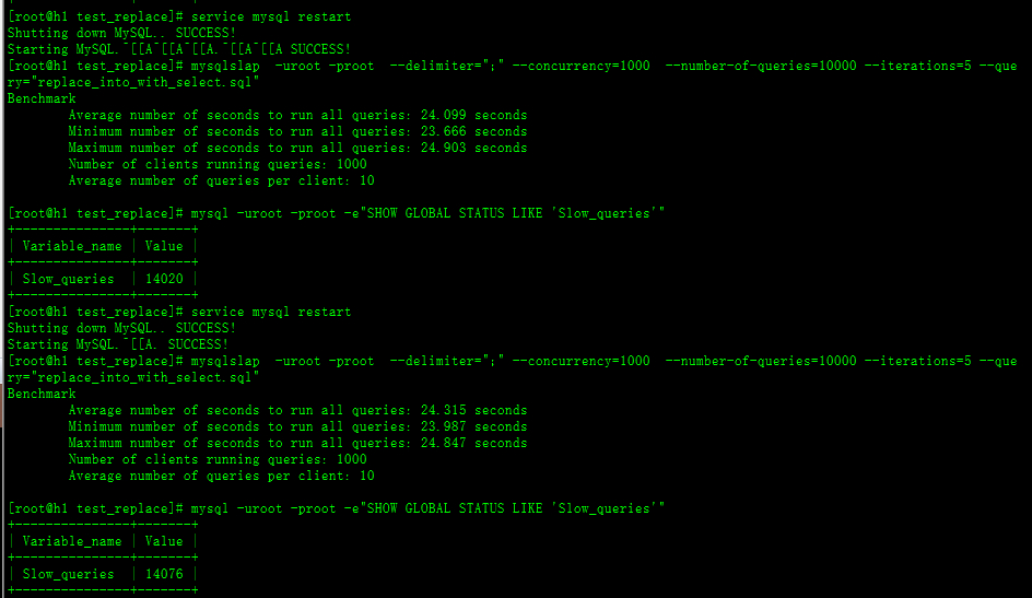 mysqlslap -uroot -proot --delimiter=";" --concurrency=1000 --number-of-queries=10000 --iterations=5--query="replace_into_with_select.sql"