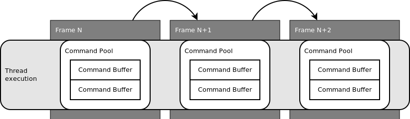 In this blog post I have given a brief overview of how to get overlap between CPU threads that record commands into command buffers over multiple frames. For our own internal implementation we found this really useful as it allowed us to start preparing work for the next frame very early on, ensuring the GPU is kept busy.