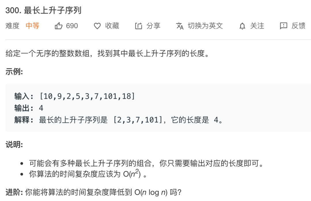 先看一下题目,LeetCode 第 300 题就是: