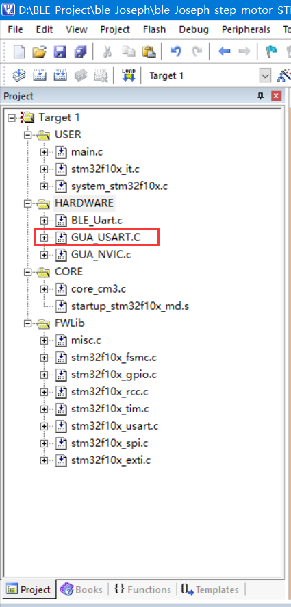 1)编写驱动GUA_USART.c(存放在“……\HARDWARE”)