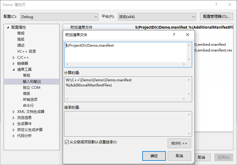 在工程目录中创建一个xx.manifest文件(xx是可以工程名字或者其他有意义的,这里取的是Demo.manifest),文件内容如下: