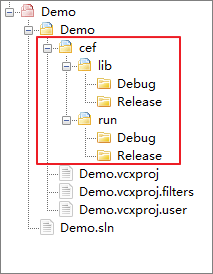 将 “$CEF\Debug” 下除了 “libcef.lib”、“cef_sandbox.lib” 的所有文件复制到 “Demo\Demo\cef\run\Debug” 下;