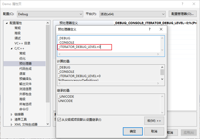 LNK2038 检测到“_ITERATOR_DEBUG_LEVEL”的不匹配项: 值“0”不匹配值“2”(cefsimple_win.obj 中)