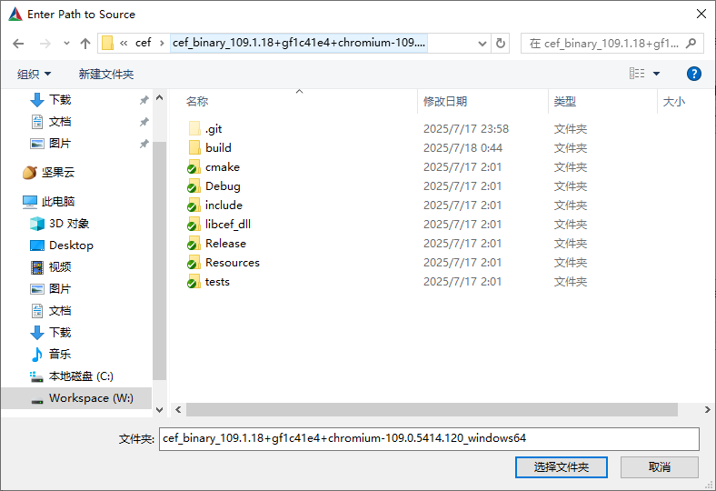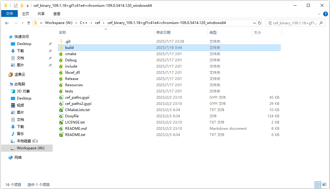 为了描述简便,下面以 “$CEF” 代替路径 “W:\C++\cef\cef_binary_109.1.18+gf1c41e4+chromium-109.0.5414.120_windows64”。