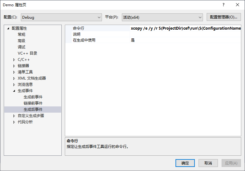 xcopy /e /y /r $(ProjectDir)cef\run\$(ConfigurationName)\* $(TargetDir)