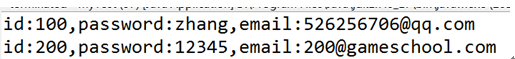 public void speak() { System.out.println("id:" + id + ",password:" + password + ",email:" + email); } } |