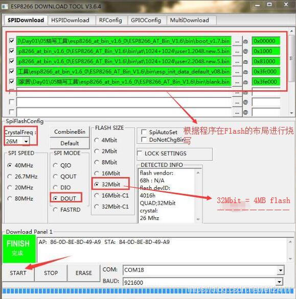 2.此时esp8266通过串口-usb连接电脑,我们使用flash_download_tools烧录程序,这里使用AT固件程序做测试
