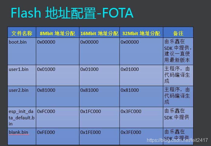 有Non-FOTA和FOTA两种。我们选用带在线固件升级(FOTA)的这种Flash布局方案