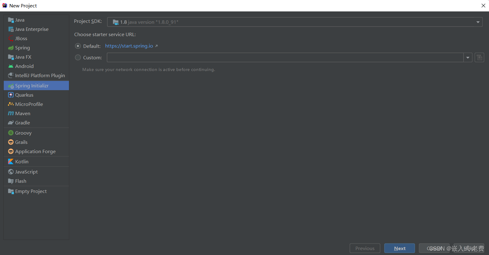 目前这里设置的选项是web和spring web。但是大家可以看下左下角的选项,这里出现了很多spring cloud的内容,这说明spring cloud的很多配置本身也是依赖于spring boot来开发的。