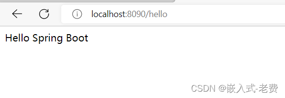 8、打开一个浏览器,输入localhost:8090/hello,如果你看到这样的网页,那基本上代表配置ok了,那代表第一个spring boot程序ok了。