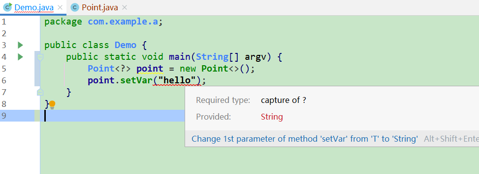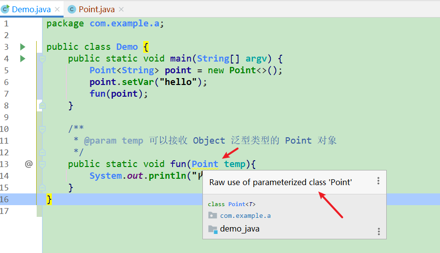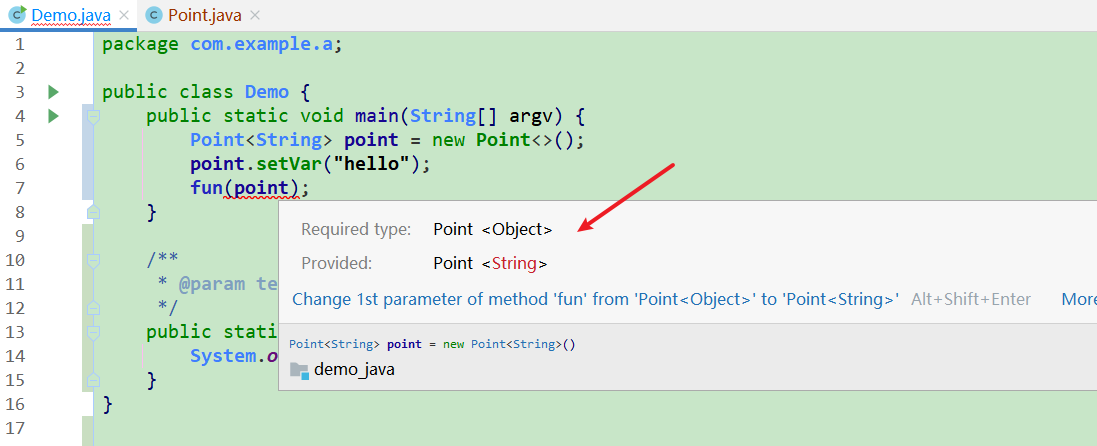 java: 不兼容的类型: com.example.a.Point<java.lang.String>无法转换为com.example.a.Point<java.lang.Object>