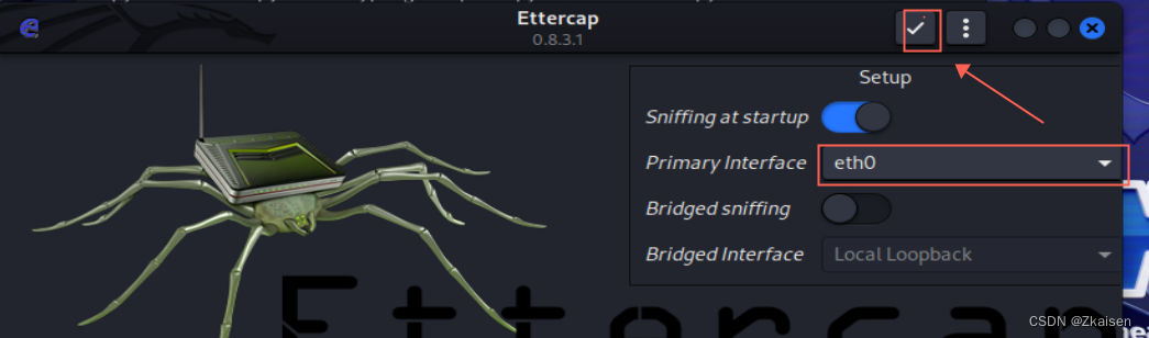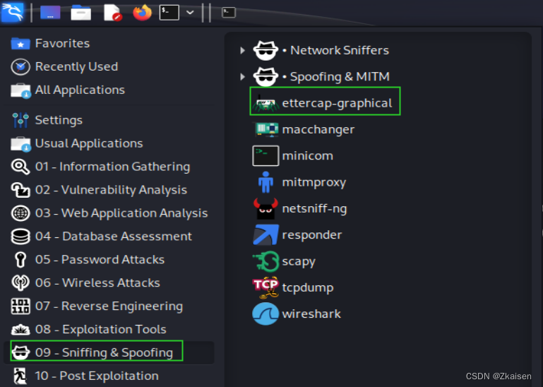 如果遇到直接点击ettercap图标无法启动,尝试终端输入ettercap -G运行
