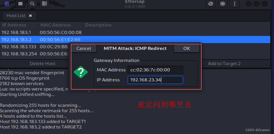 - 重定向到哪里去,这里输入的是一个虚假的MAC地址