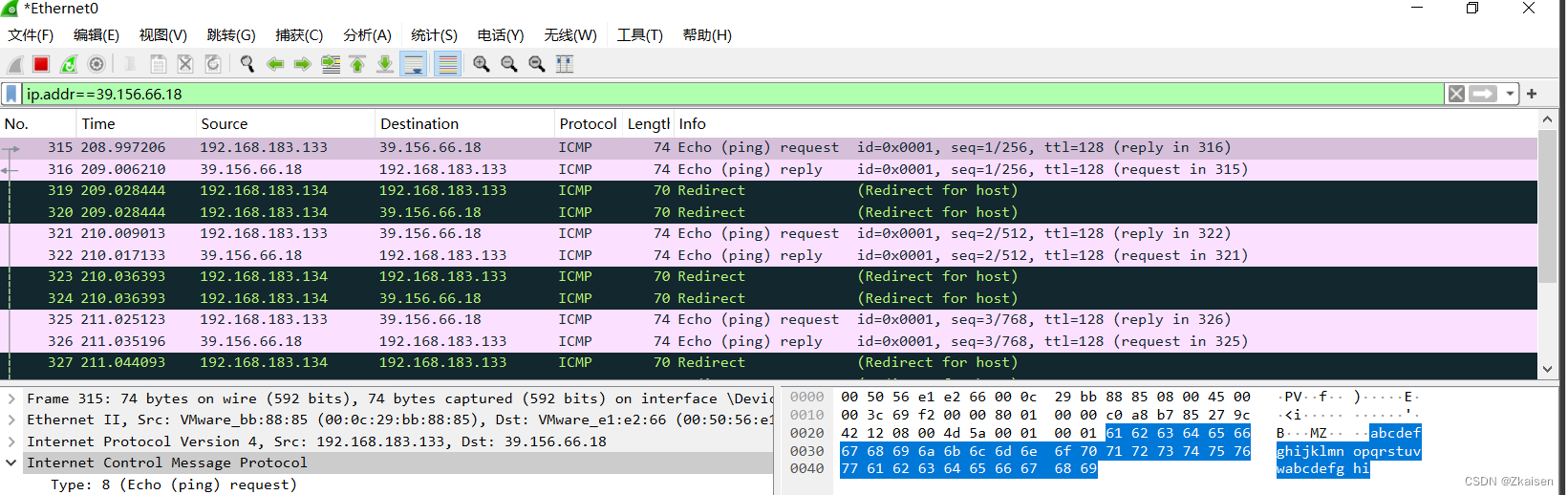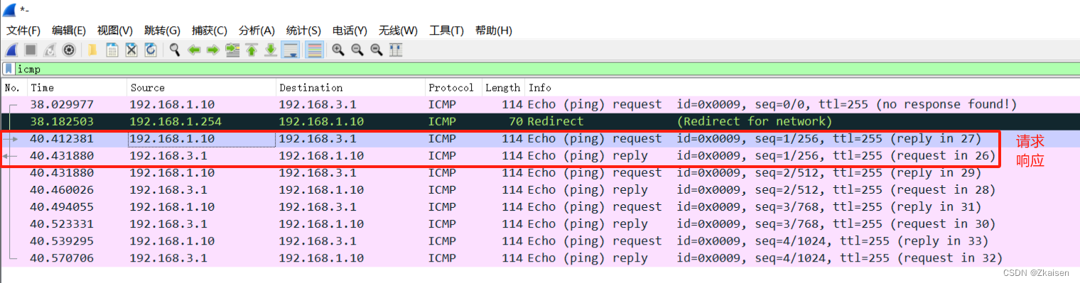 - 这里抓到了ICMP报文