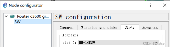 - slots设置:交换机要选择NM-6ESW,主机和路由器选NM-1FE-TX
