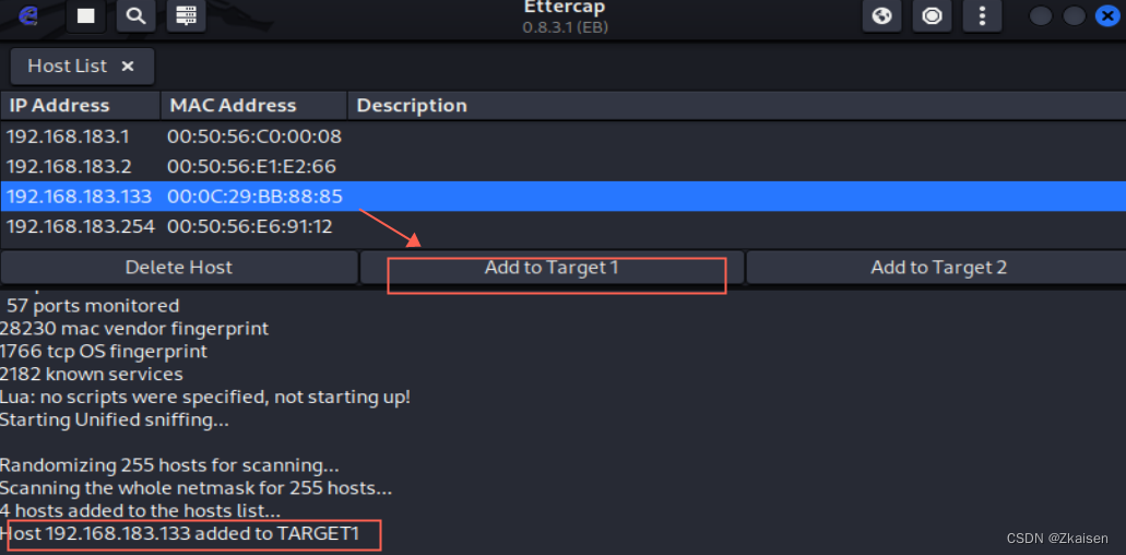 - 在扫描列表中找到被攻击主机,右击选中,然后Add to Target1