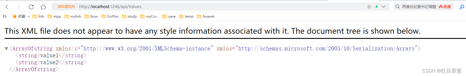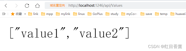 这个不是我们想要的,那么我们单独访问一下ip:port/api/values