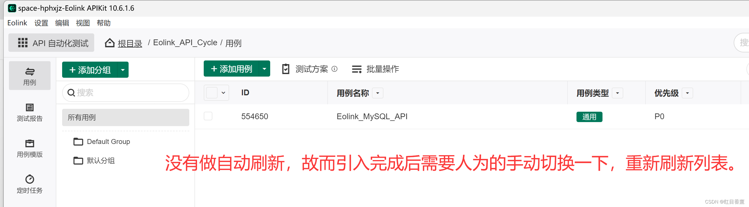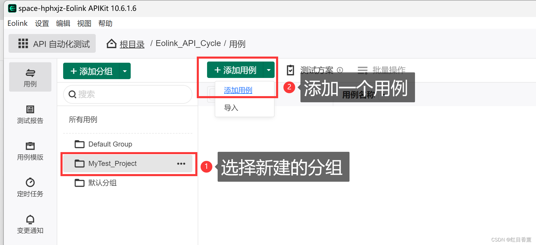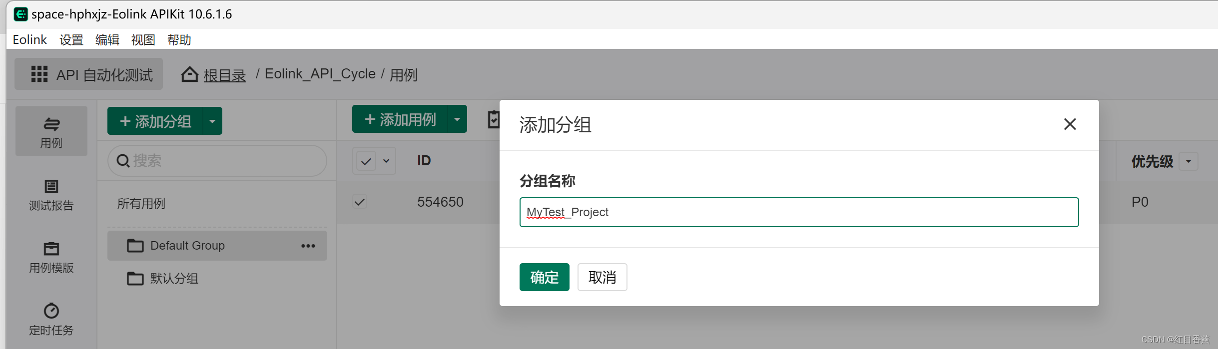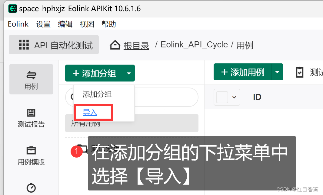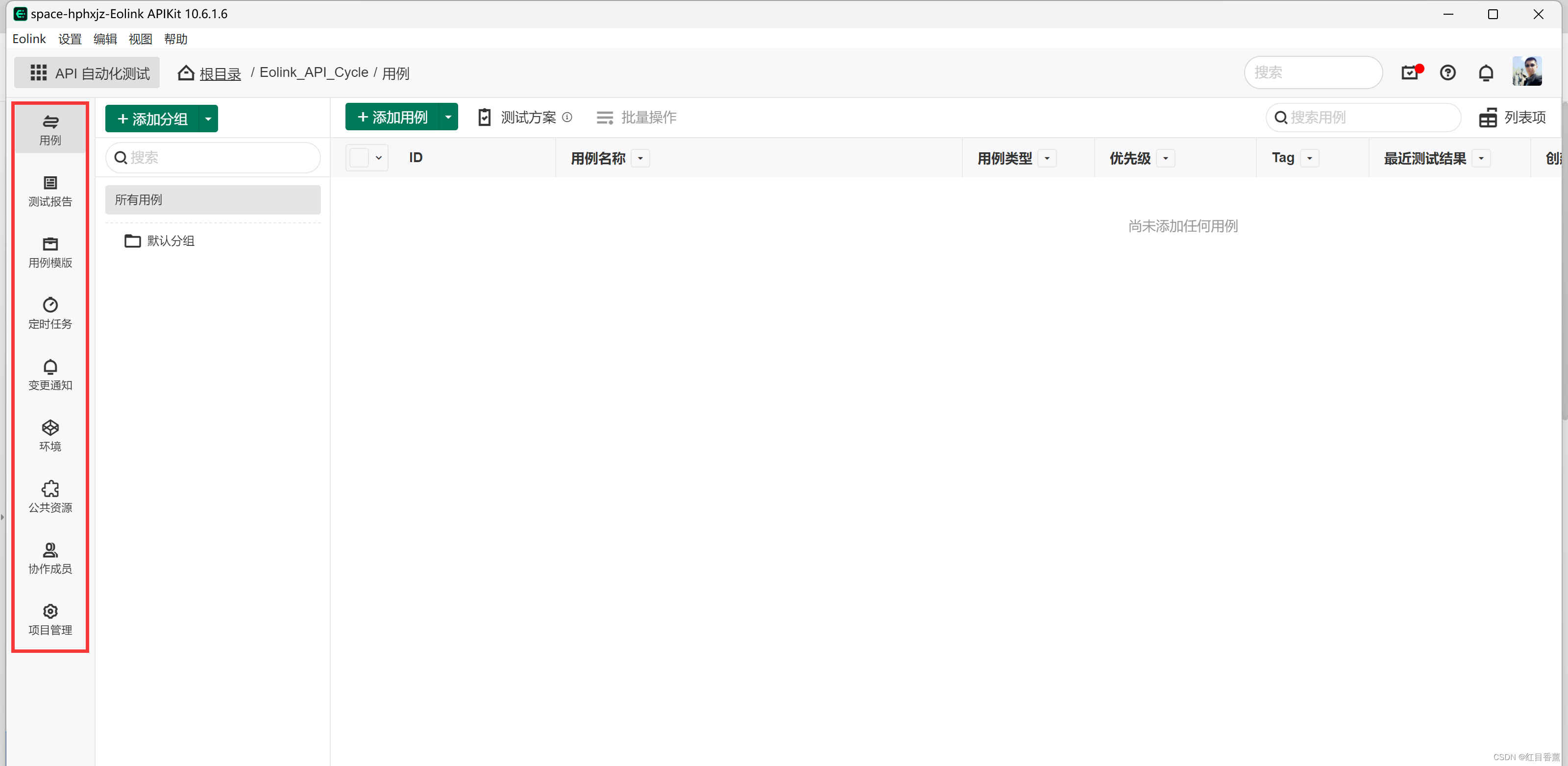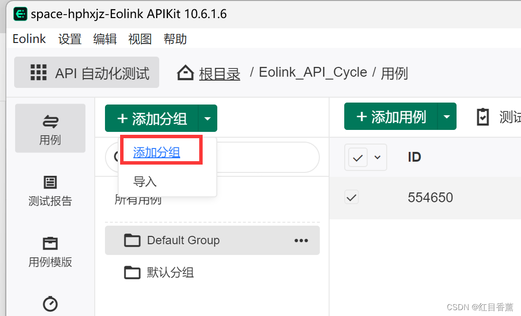 我们这次需要自己添加一个用例来存放API,那么,我们先来添加一个分组。