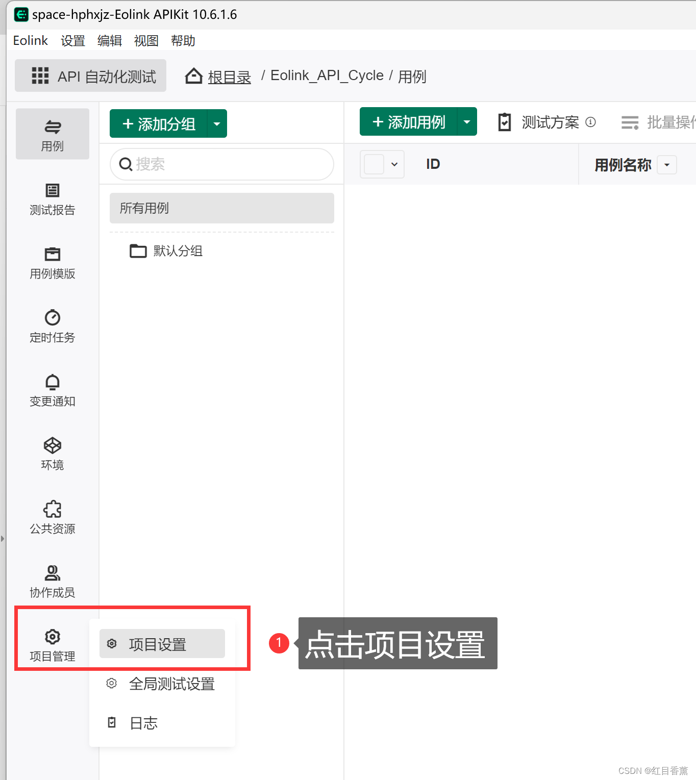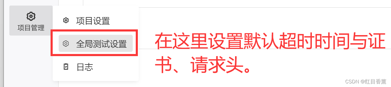 我们这里对项目管理中的【项目设置】、【全局测试设置】、【日志】均进行功能演示。