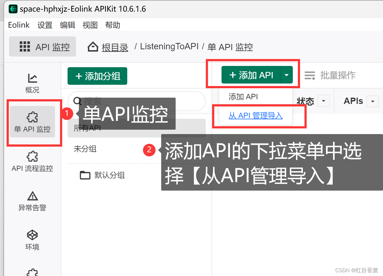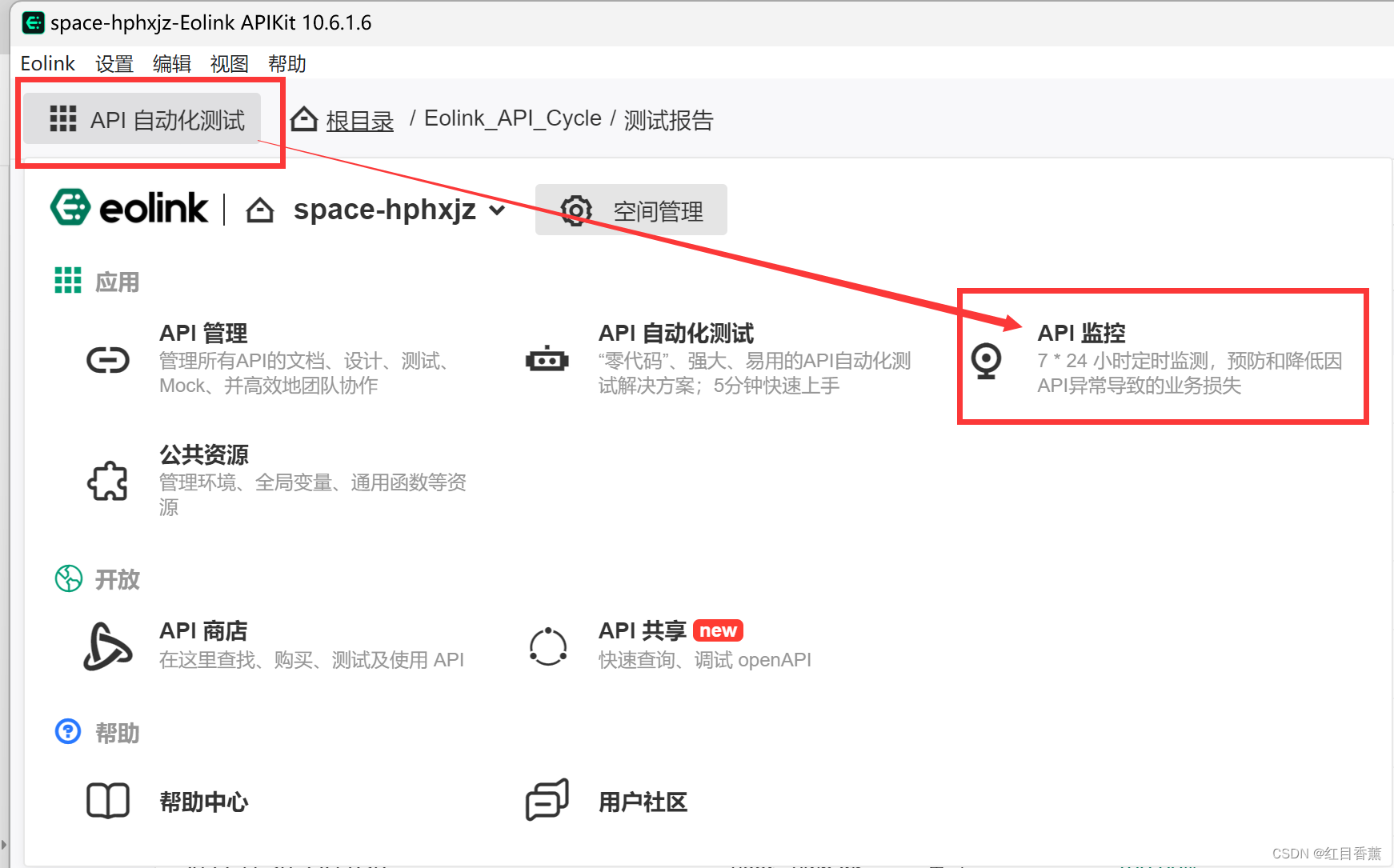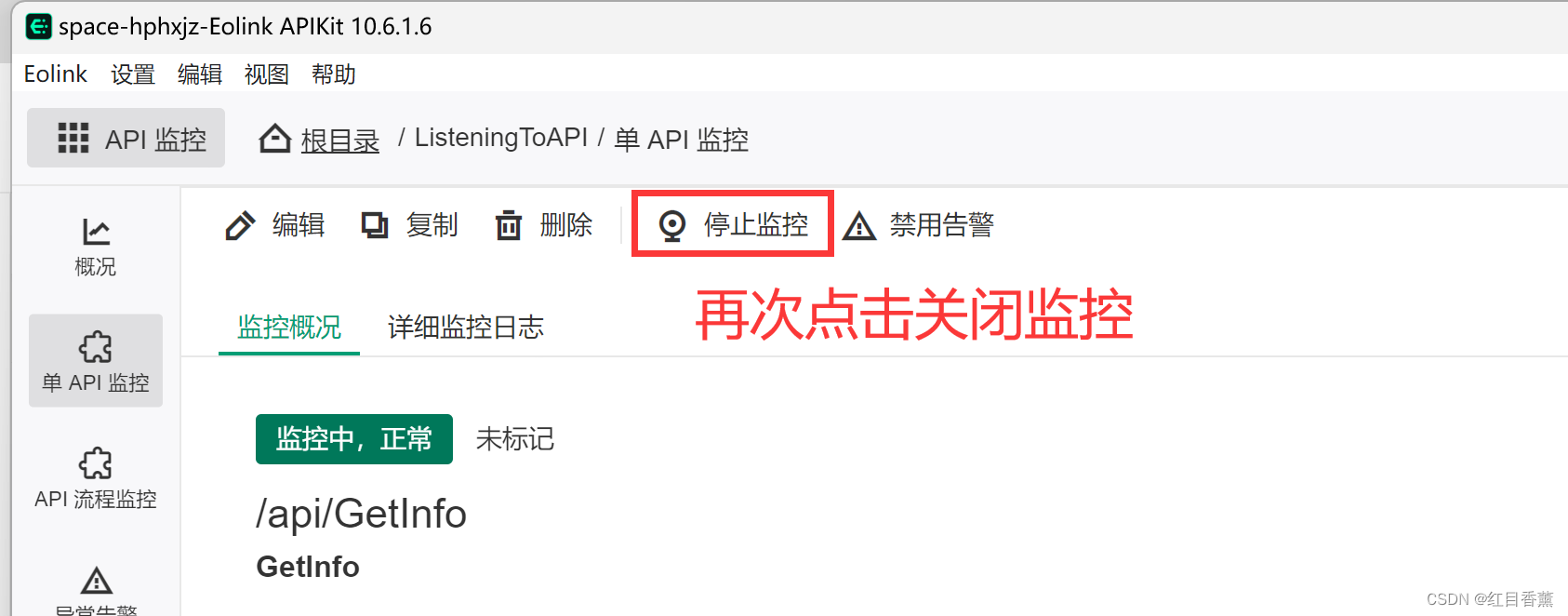 这个功能在左上角的选项中,我们选择【API监控】