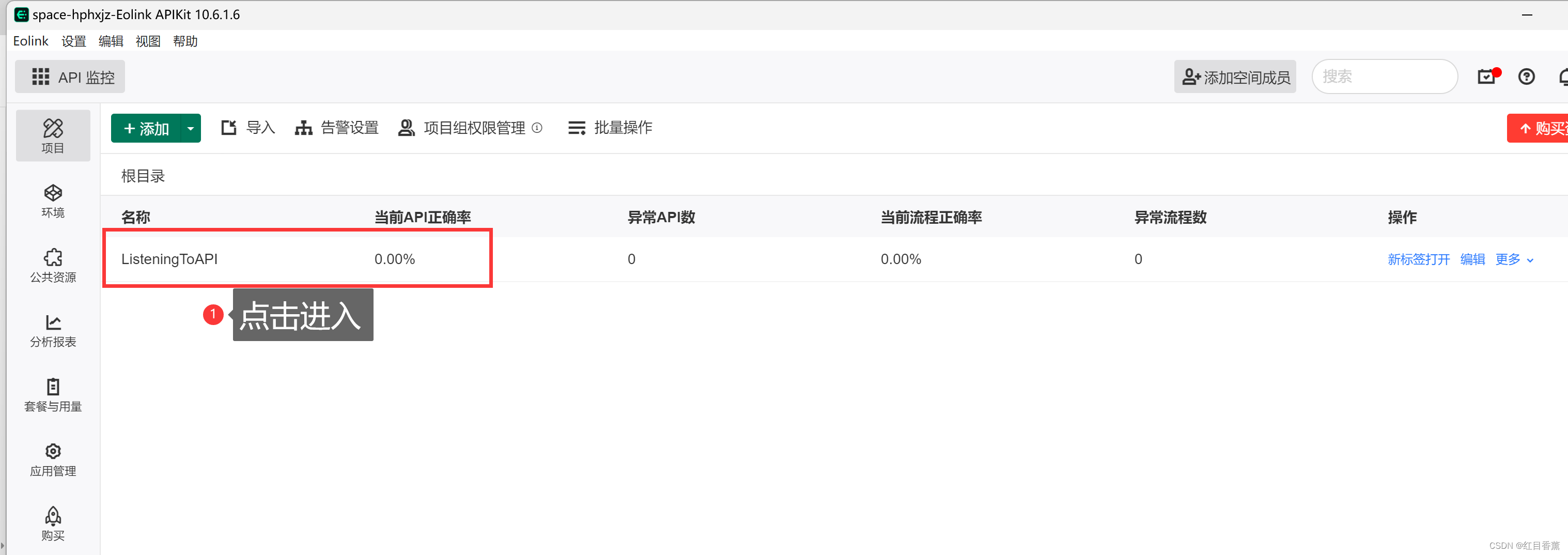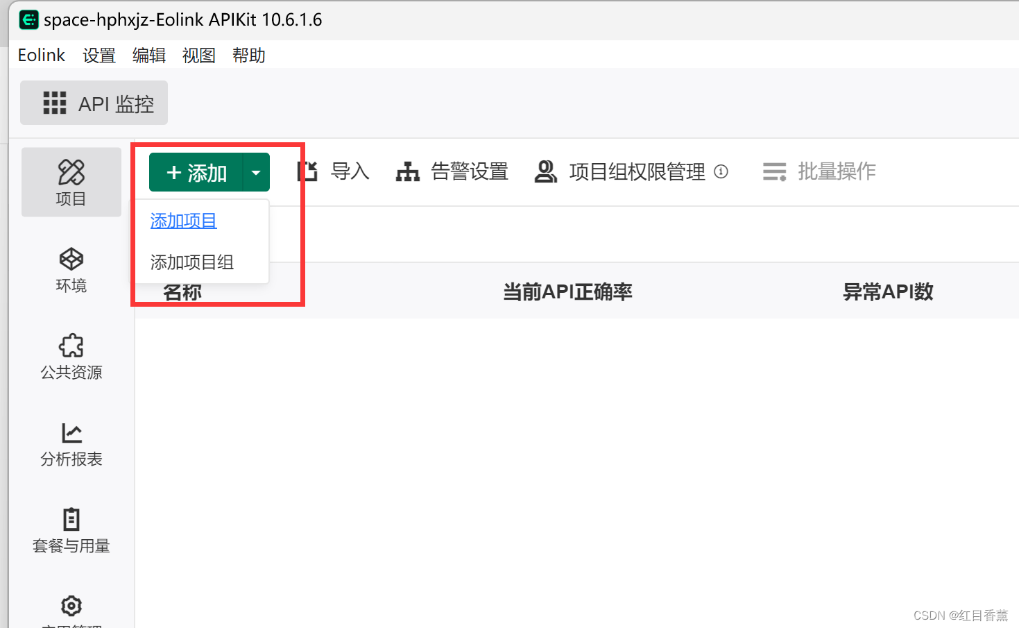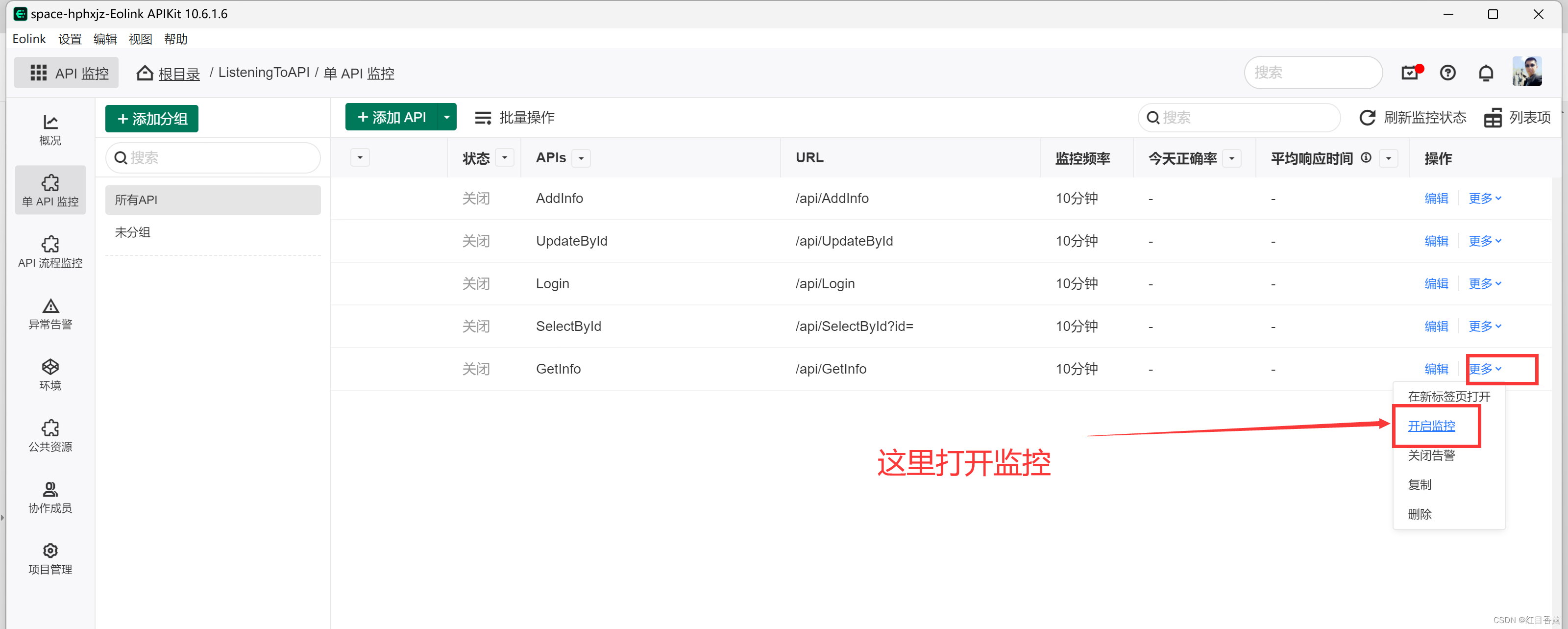 这个功能在左上角的选项中,我们选择【API监控】