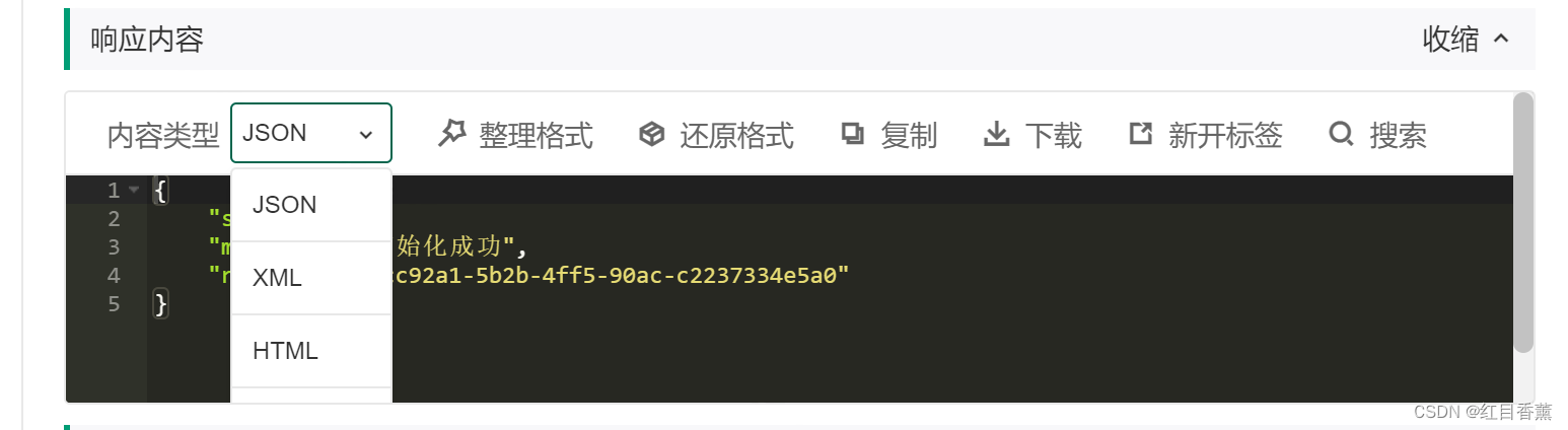 响应的数据内容我们有三种格式展示,还有整理操作,数据量大的话就可以直接下载。