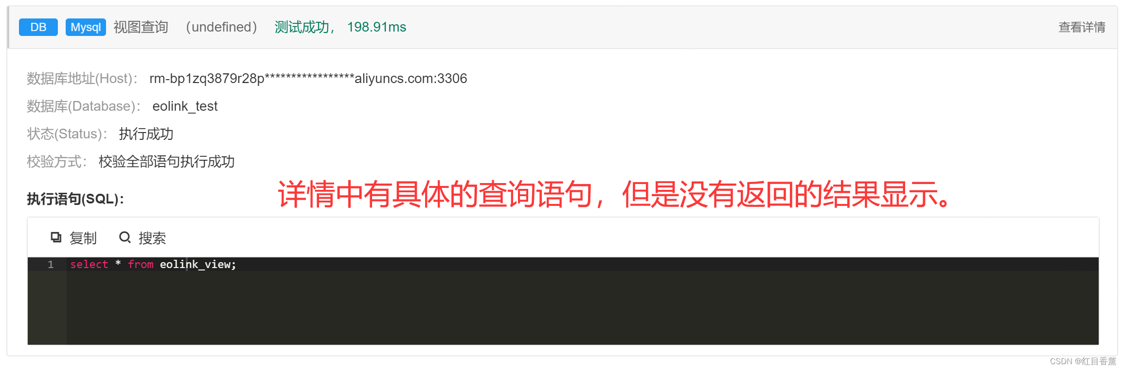 这里我们能看到查询的sql语句但是无法查询最终返回的结果,我们可以进入到用例中具体的查看API所返回的结果。