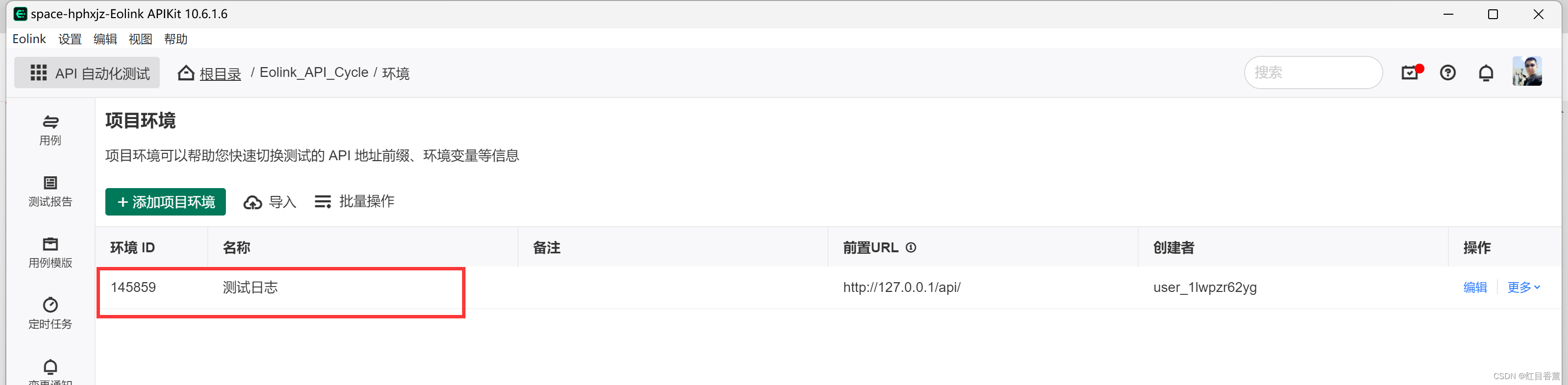 在今天的整个测试过程中我感受到了Eolink在真正的用心做这个产品,简化了很多操作步骤,仅仅环境这个功能就解决了好多测试人每次换环境的尴尬,每次后台服务地址一换就得跟着更换,老麻烦了,这回有了环境就添加一个环境直接点几下就成功了,非常的NICE。并且测试过程中的各种批量处理真的是舒服,节约了很多工作时间,可以更好更高效的完成本职的工作内容,非常棒。强烈推荐。下放有地址链接: