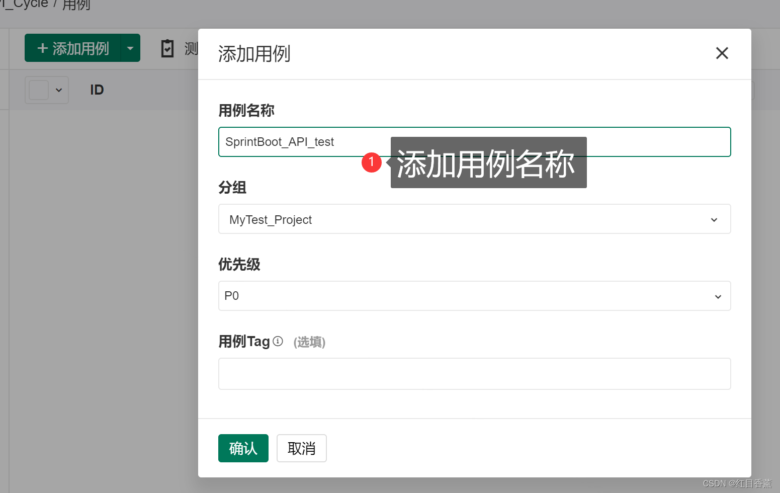 添加用例名称: