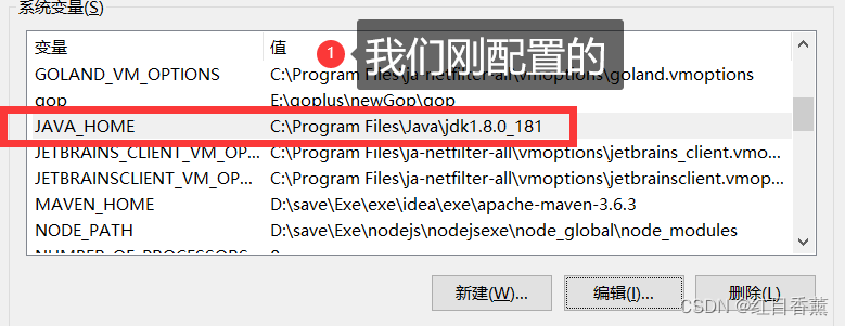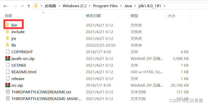 复制路径:【C:\Program Files\Java\jdk1.8.0_181】这里是jdk的存放路径,我们没有加\bin,一会在环境中单独添加。