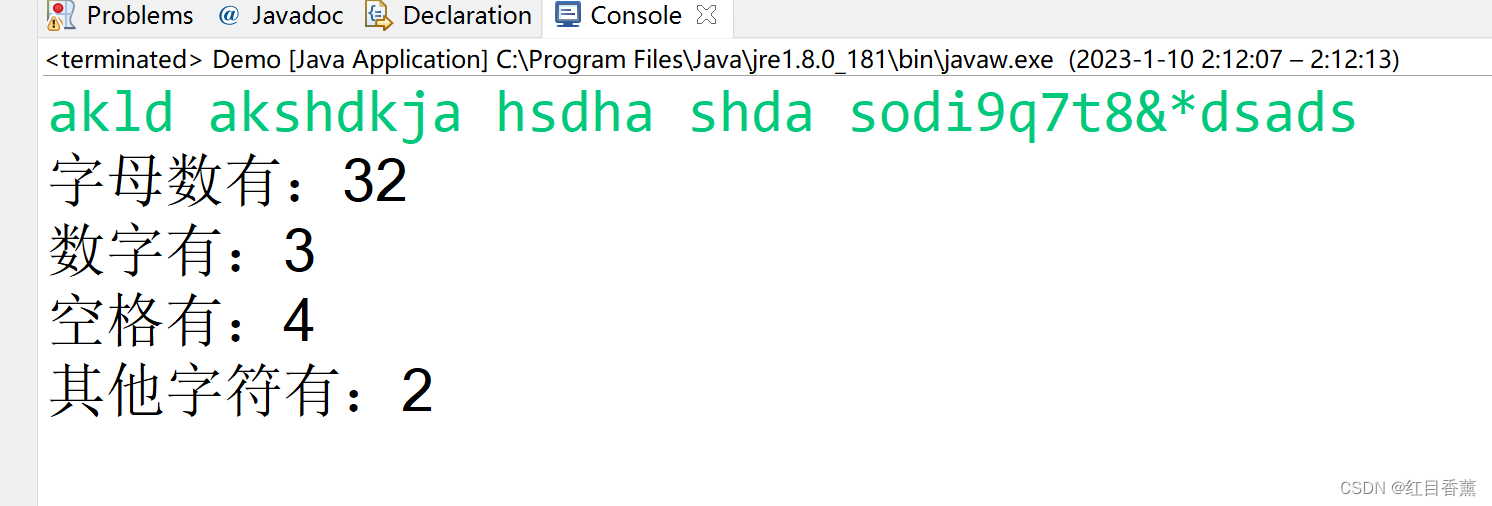 解析,写个循环,挨个判断字符类型后进行归类统计数量即可,但是我们的统计方式可以分为两种,可以直接ASCII码来判断,也可以通过【Character】包装类来直接判断类型,这里【Character】包装类给了很全的符号类型判断方法。我在文末留给大家了。