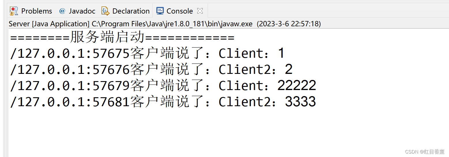 System.out.println(socket.getRemoteSocketAddress() + "服务端说了:" + readLine);