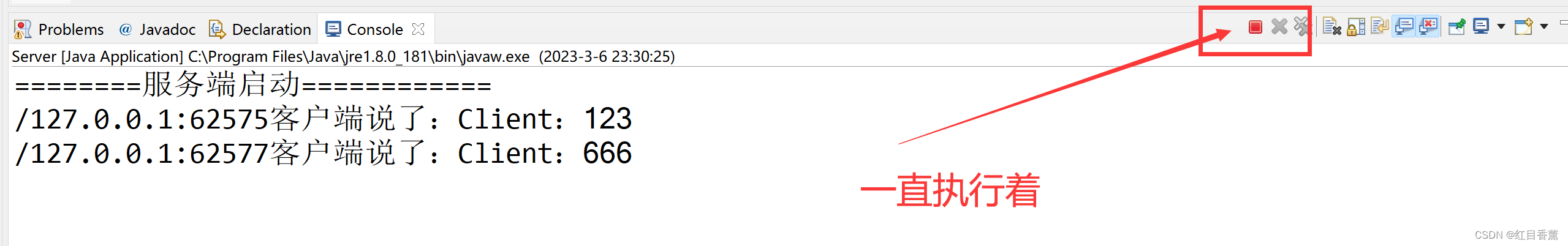 System.out.println(accept.getRemoteSocketAddress() + "客户端说了:" + br.readLine());