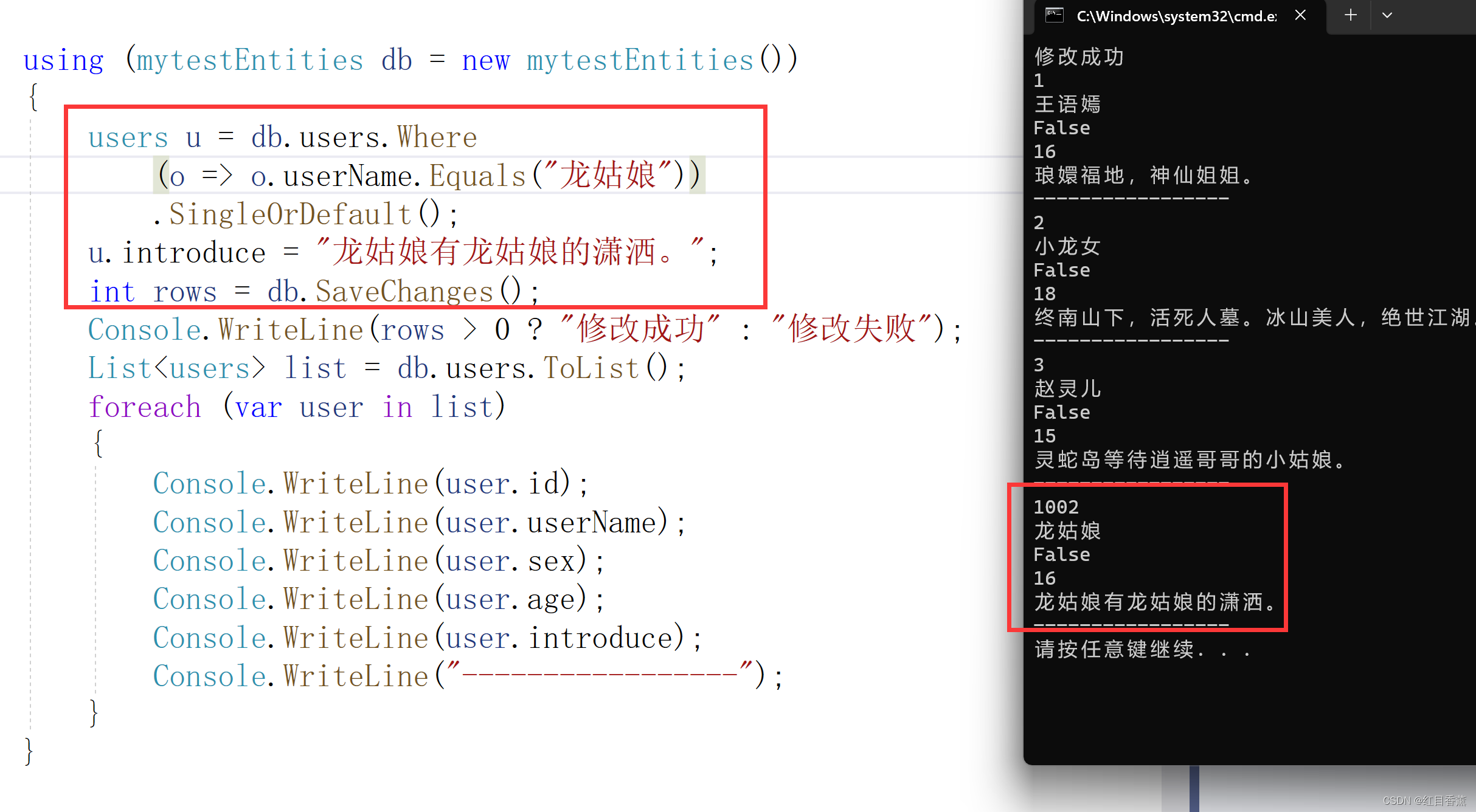 Console.WriteLine(rows > 0 ? "修改成功" : "修改失败");