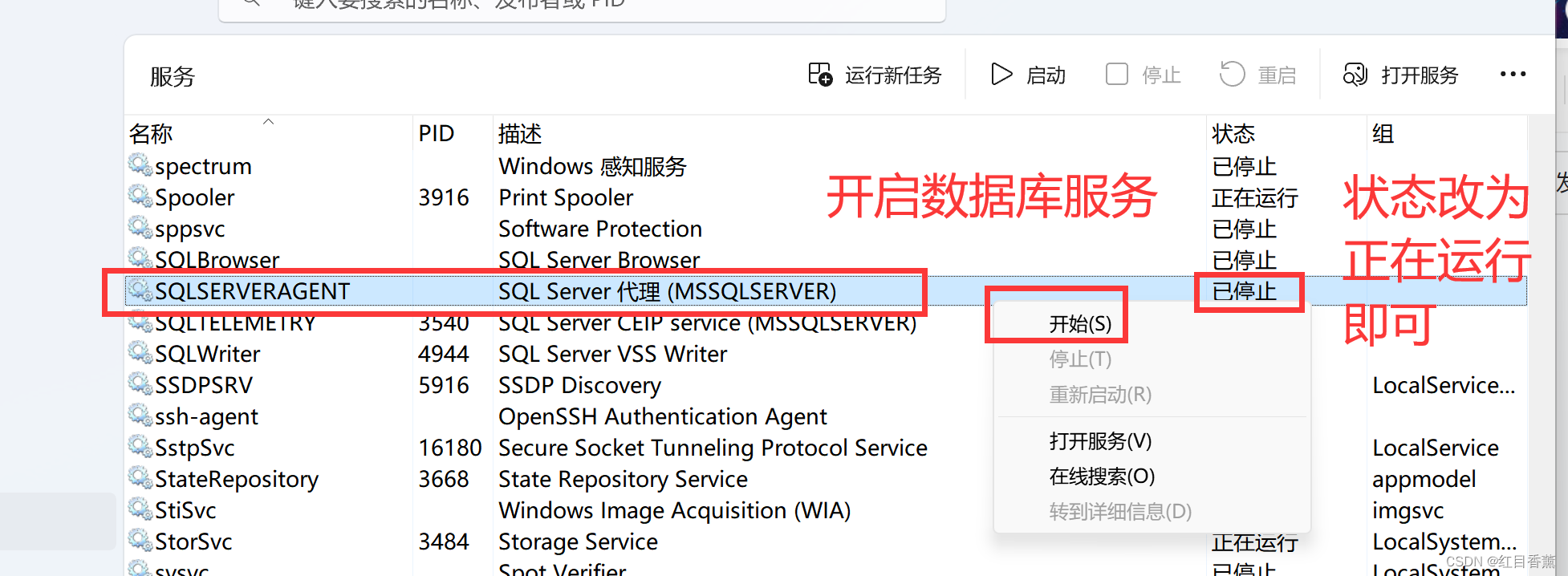 确认开启SQLServer数据库