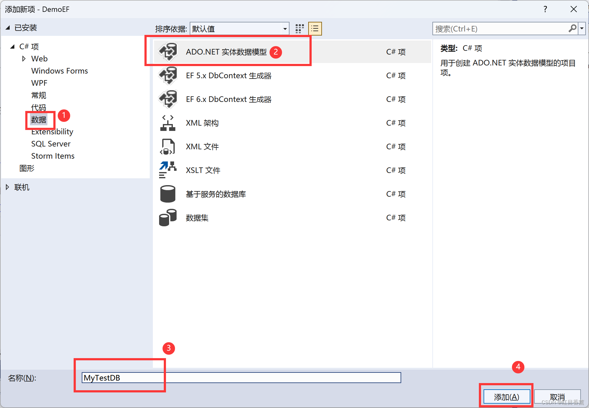 2、添加【ADO.NET实体数据模型】