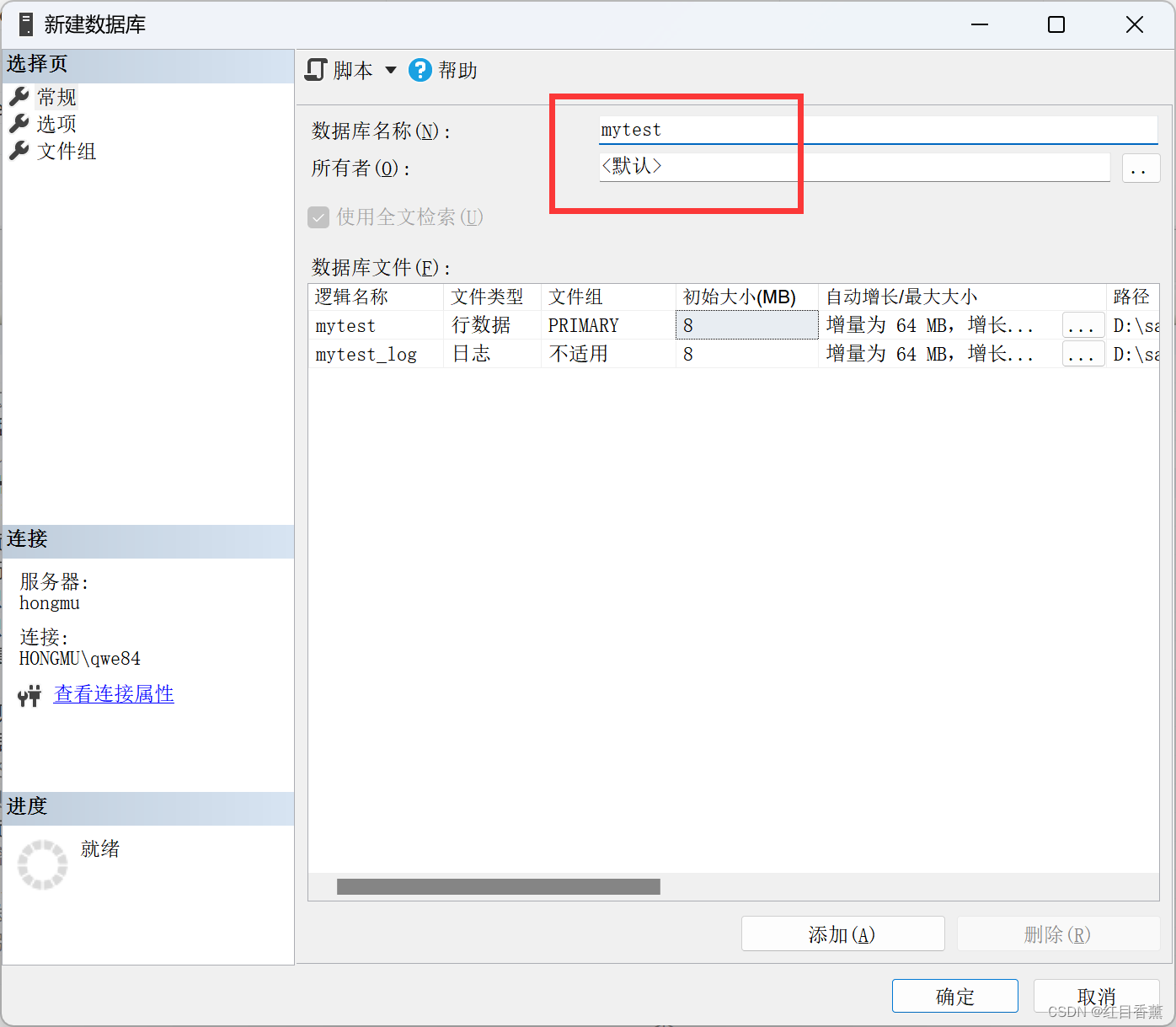 测试数据库名称:【mytest】