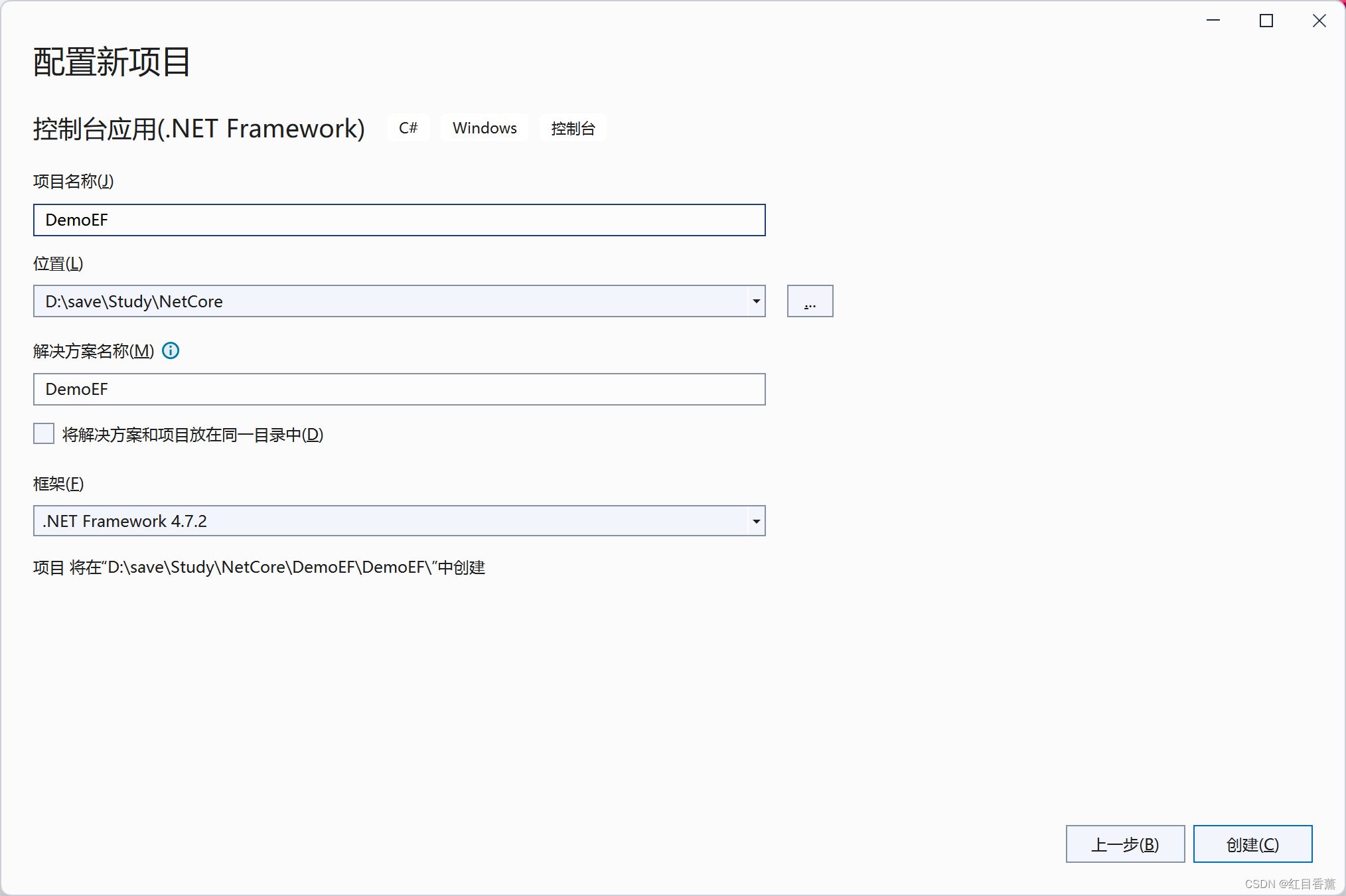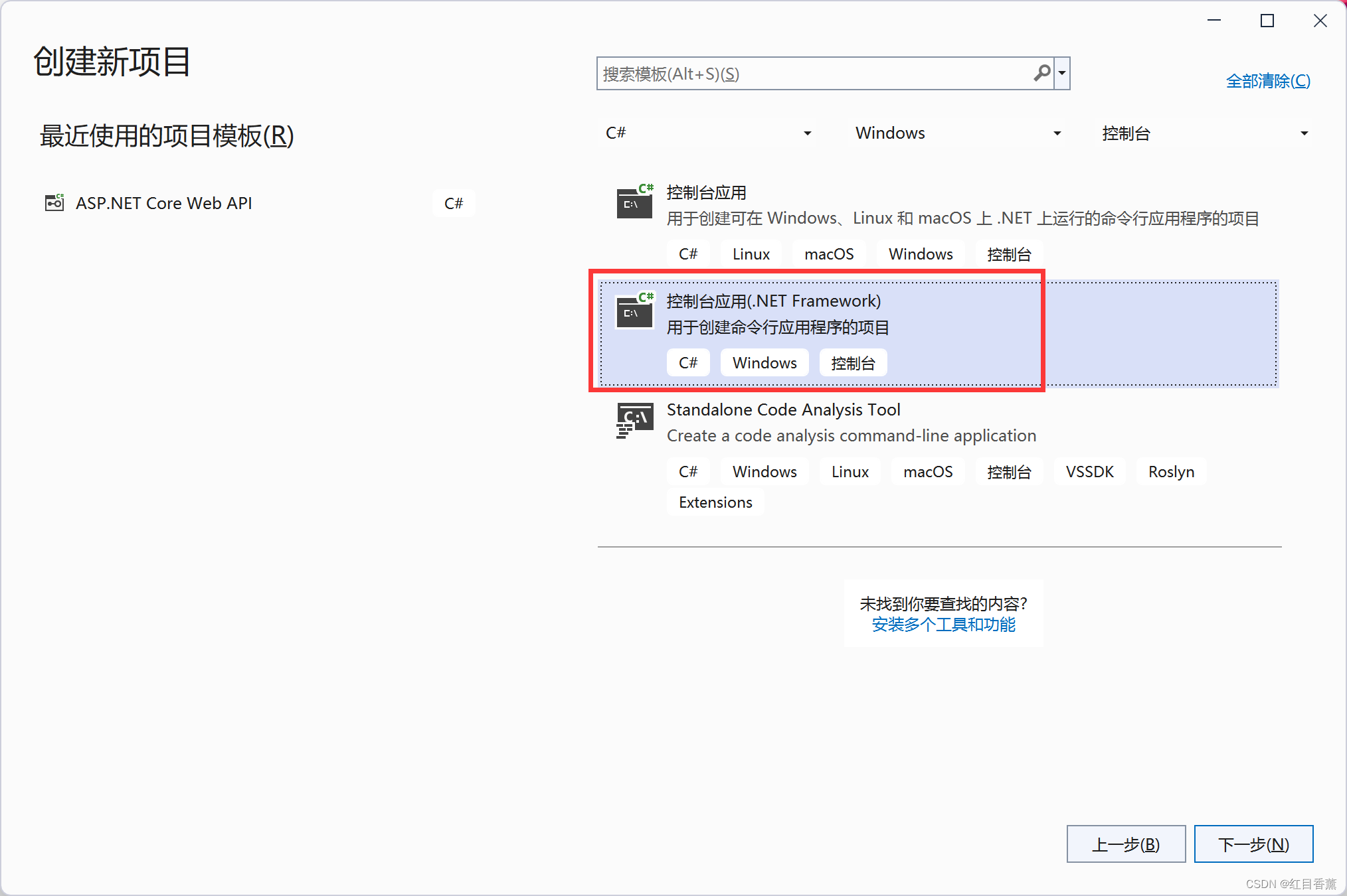 控制台请创建【控制台应用(.NET Framework)】