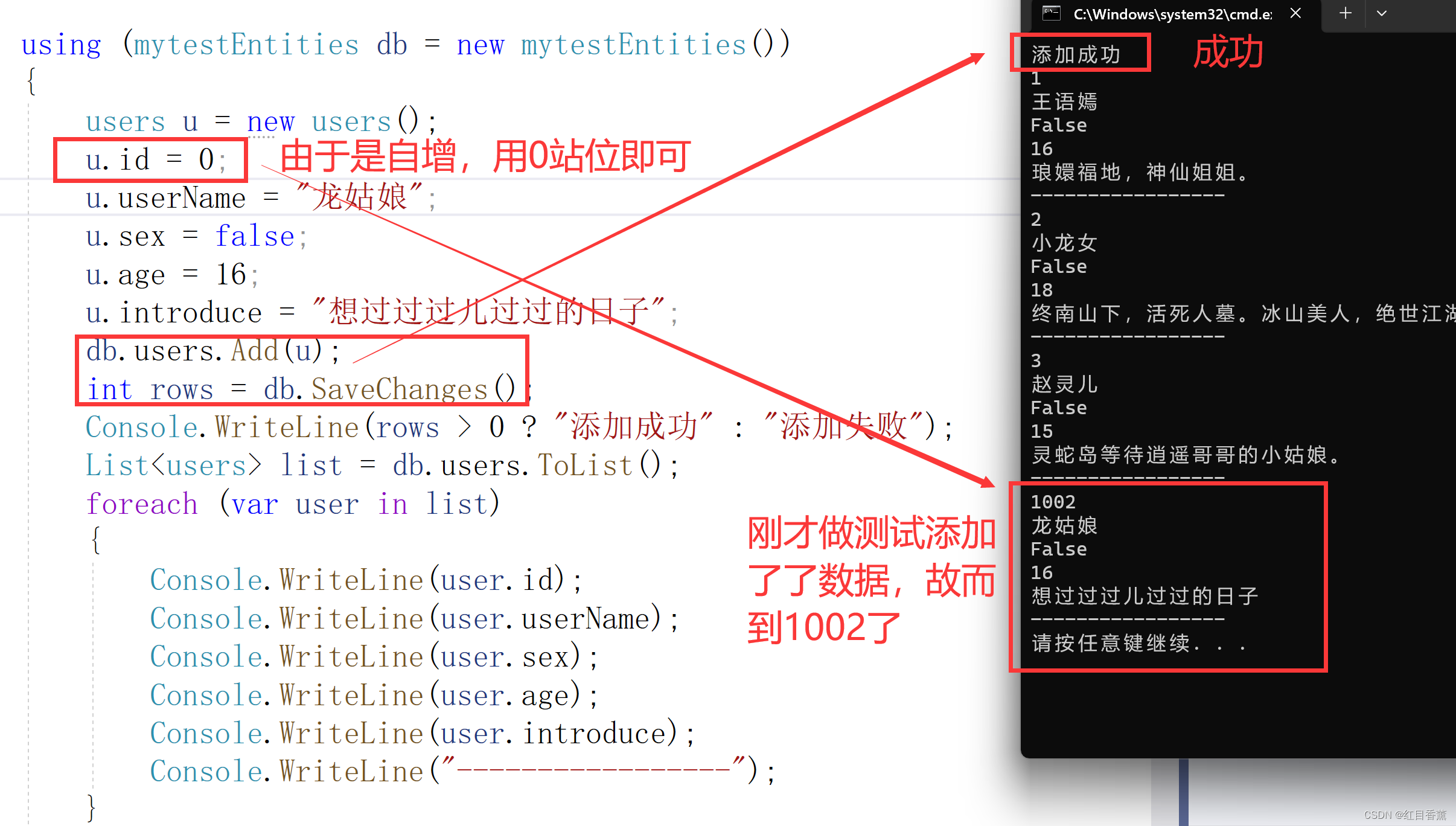 Console.WriteLine(rows > 0 ? "添加成功" : "添加失败");