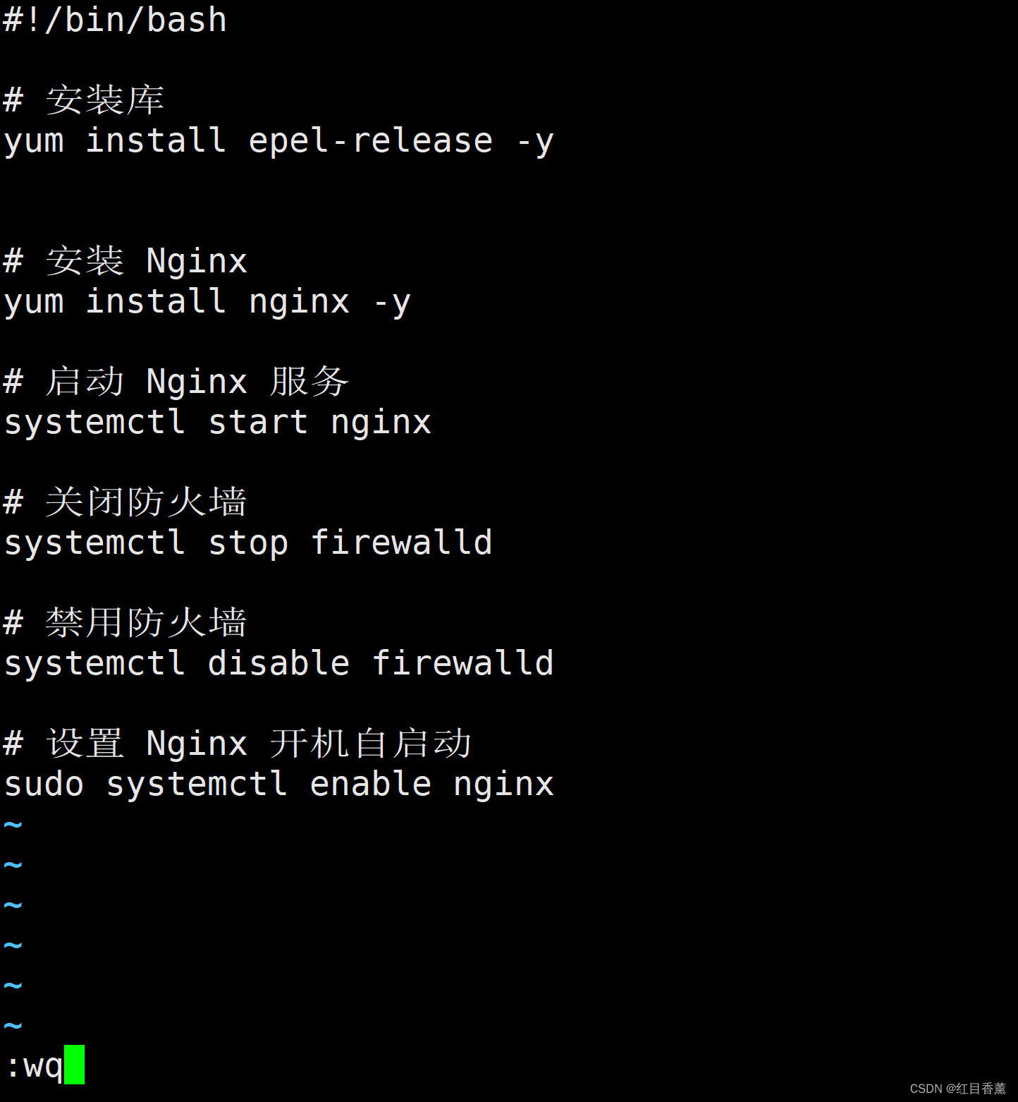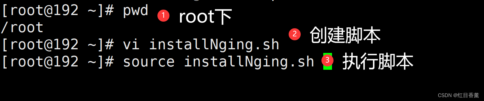 为了方便直接在【/root】下创建一个【installNginx.sh】文件,粘贴一下内容,并【:wq】保存后通过【source】执行该脚本文件。