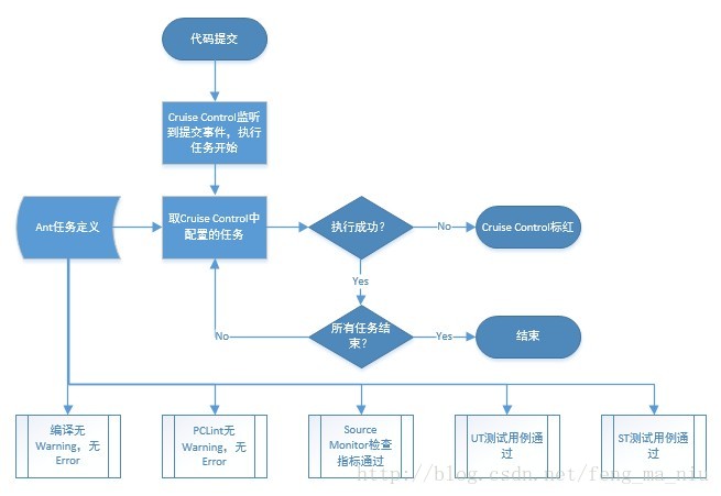 既然说到这,达到目标自然也是可能的。首先,需要自动构建管理工具:Cruise Control,这个工具分为.Net版和Java版,当然最好还是选择后者,因为可以进行搭配使用的工具很多。这个工具的主要功能是,提供一个服务器端,用户进行任务的配置,例如说编译,各个目标的检查,最后按照时间或者代码的更新,执行各个任务的检查,将失败的任务告诉用户。