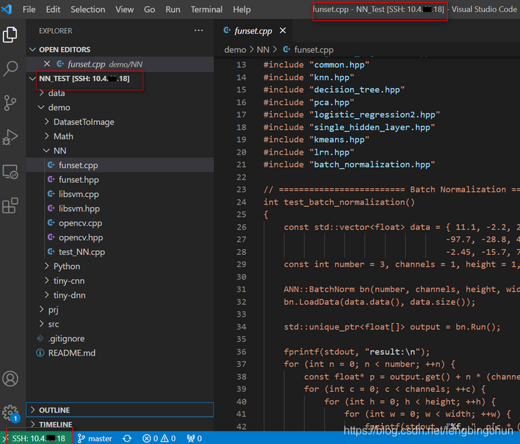 (4).稍等片刻后,VS Code将连接到SSH服务器,如打开Ubuntu上的NN_Test,需要输入密码,并点击”Enter”,结果如下: