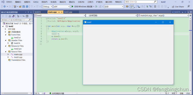 (1).打开vs2022,点击创建新项目,选中"Qt Widgets Application",点击下一步:项目名称:test2,位置:E:\test;点击创建;其它全部使用默认;